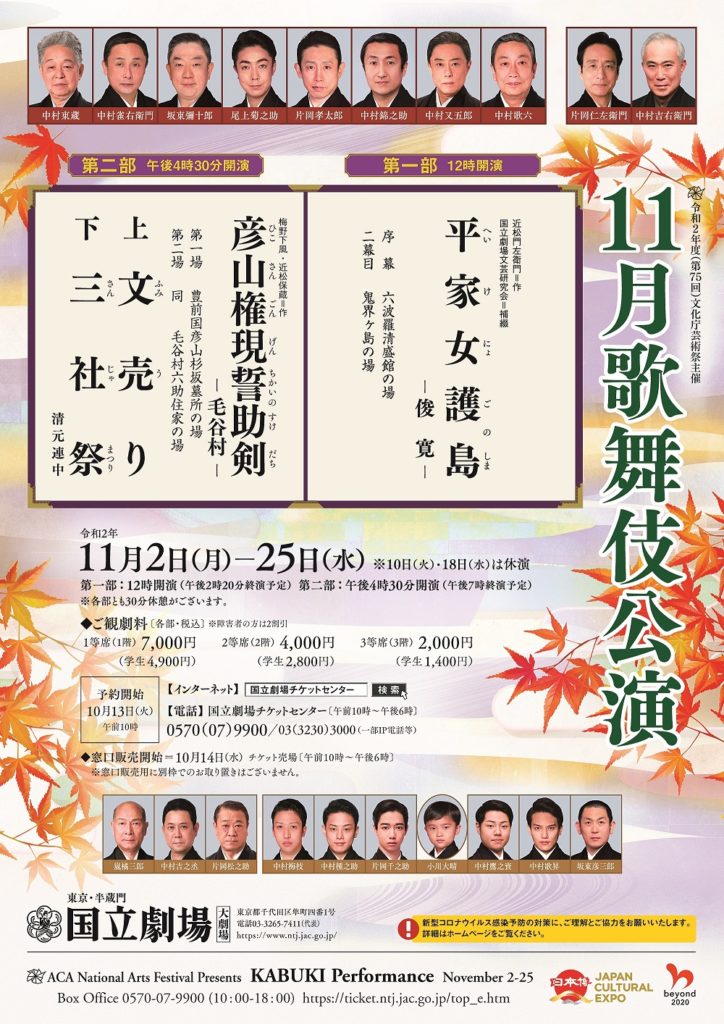 11月国立劇場:彦三郎This entry was posted in 坂東彦三郎スケジュール on 2020年10月18日 彦三郎が国立劇場 11月歌舞伎公演 第二部に出演いたします。 11月2日(月)初日〜25日(水)千穐楽 休演日:10日(火)18日(水) <第二部>16:30開演 一、彦山権現誓助剣ー毛谷村ー 杣人斧右衛門:彦三郎 詳細はこちら