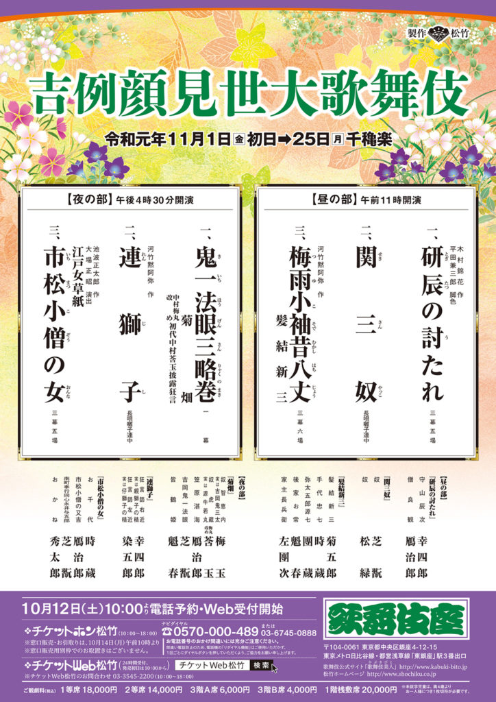 11月歌舞伎座:彦三郎・亀蔵This entry was posted in 坂東亀蔵スケジュール 坂東彦三郎スケジュール on 2019年10月2日 <昼の部> 一、研辰の討たれ に彦三郎・亀蔵が出演いたします。 公演詳細はこちら