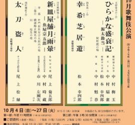 彦三郎・亀蔵が第二部に出演いたします。 10月4日(日)初日〜27日(火)千穐楽 休演日:15日(木) <第二部>15:30開演 一、新皿屋舗月雨暈ー魚屋宗五郎ー 磯部主計之助:彦三郎 […]