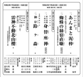 平素より格別のご高配を賜り、厚く御礼申し上げます。 歌舞伎座「二月大歌舞伎」第三部に出演の坂東彦三郎が、新型コロナウイルス感染症の濃厚接触者に該当する可能性があり、当面の間、休演することとなりました。 そのため、第三部公 […]
