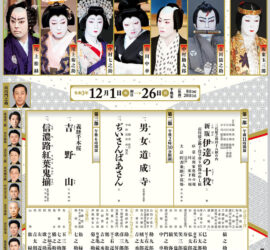 12月歌舞伎座 <第二部>に彦三郎・亀蔵が出演いたします。 歌舞伎座「12月大歌舞伎」公演 12月1日(水)初日〜26日(日) 千穐楽 ※休演日:8日(水)・20日(月) <第二部> 一、ぢいさんばあさん […]