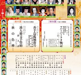 楽善・彦三郎・亀蔵が出演いたします。 10月1日(日)初日〜25日(水)千穐楽 <昼の部> マハーバーラタ戦記 大黒天:楽善 百合守良王子/多聞天:彦三郎 風韋摩王子:亀蔵 <夜の部> 沓手鳥孤城落月 氏家内膳:彦三郎 […]
